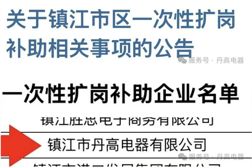 公司榮獲鎮(zhèn)江市區(qū)2024年一次性擴崗補助單位