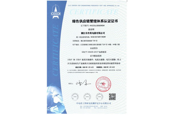綠色供應(yīng)鏈管理體系認(rèn)證證書
