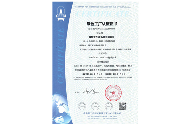 綠色工廠認(rèn)證證書
